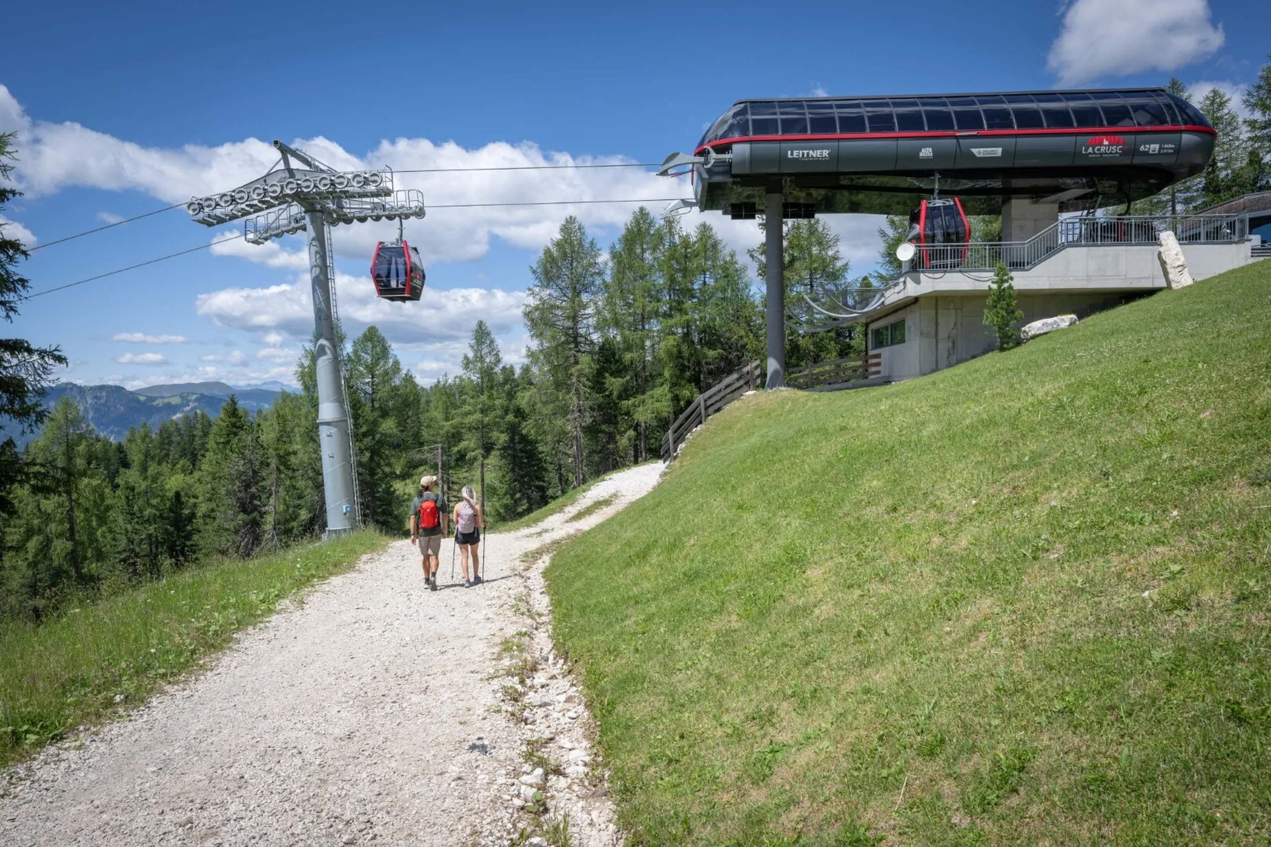 La Crusc cares for its precious natural heritage, while forging ahead with innovation: from 2025 the new La Crusc 1 cabin lift will whisk you to the heights – in panoramic comfort!