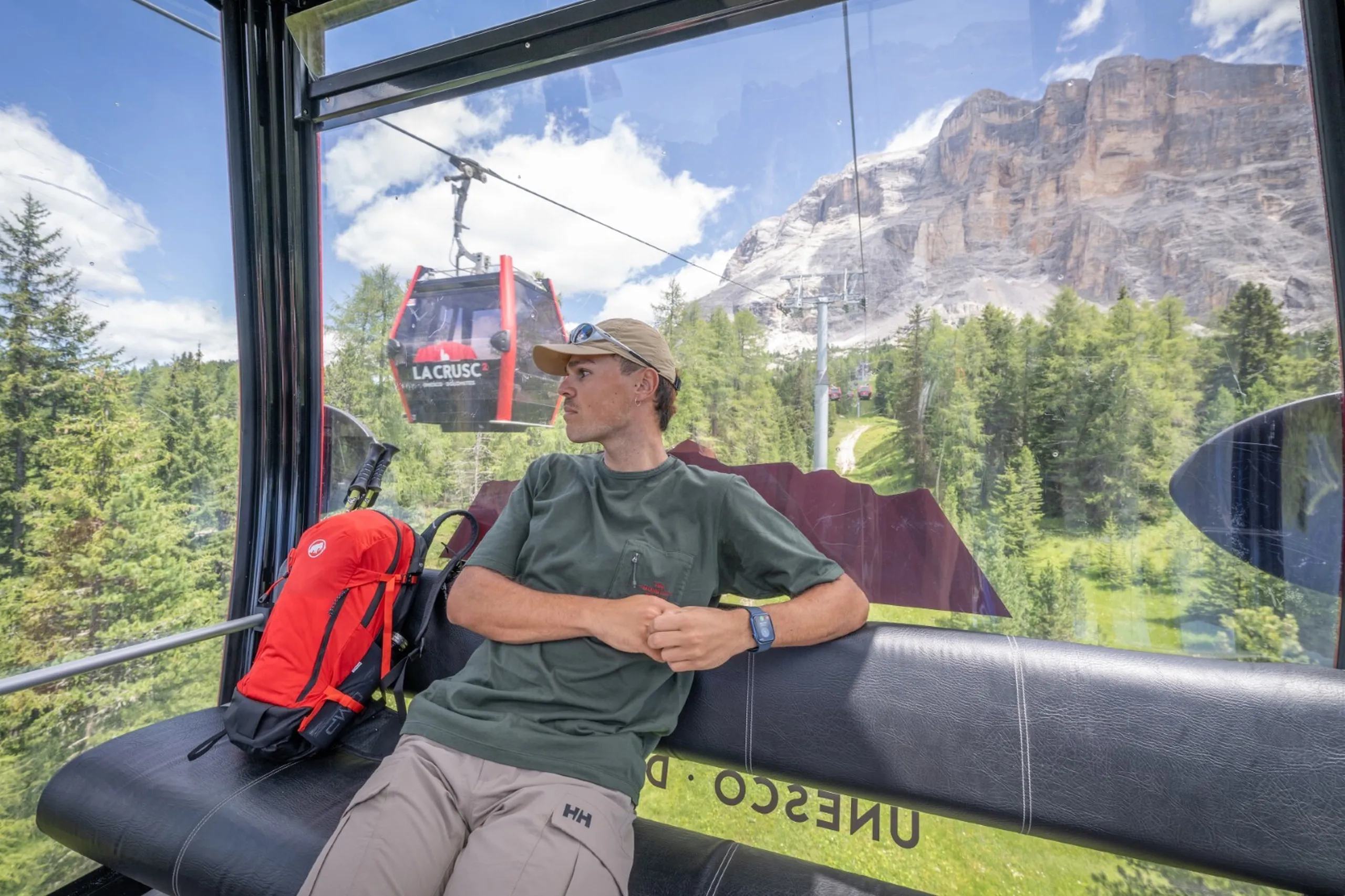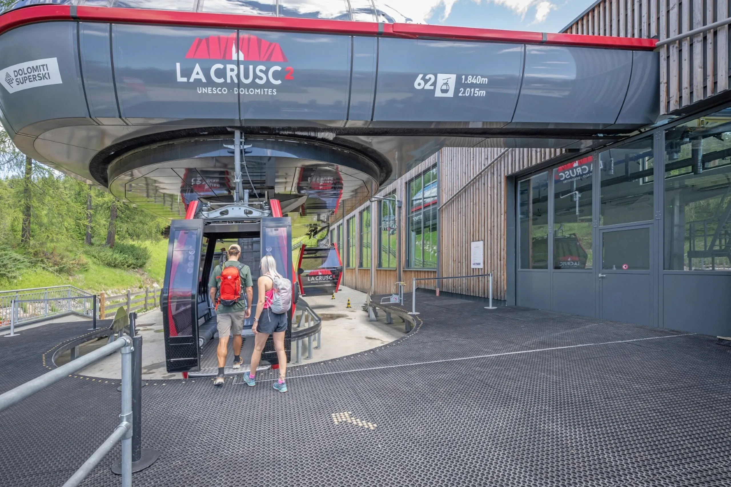 Opened in 2019, the modern La Crusc 2 cabin lift is safe, comfortable and... panoramic: the cabins – among the few in the Dolomiti Superski area with heated and fold-down seats – can accommodate groups of up to ten people, while also facilitating access for people with disabilities, the elderly, families with pushchairs and those travelling with bikes or their four-legged friends. It takes just a few minutes to arrive at new adventures amid the peaks of Alta Badia!